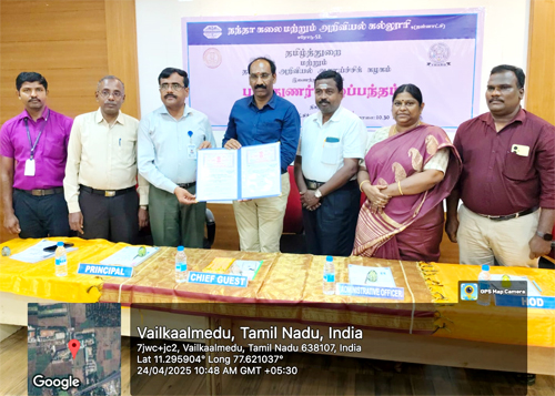 25.TNSRO has signed MoU with Department of Tamil, Nandha Arts and Science College (Auto), Erode on 24.04.2025 at College premises for collaborating research and educational work in the field of Scientific Tamil and other science disciplines, extension activities.